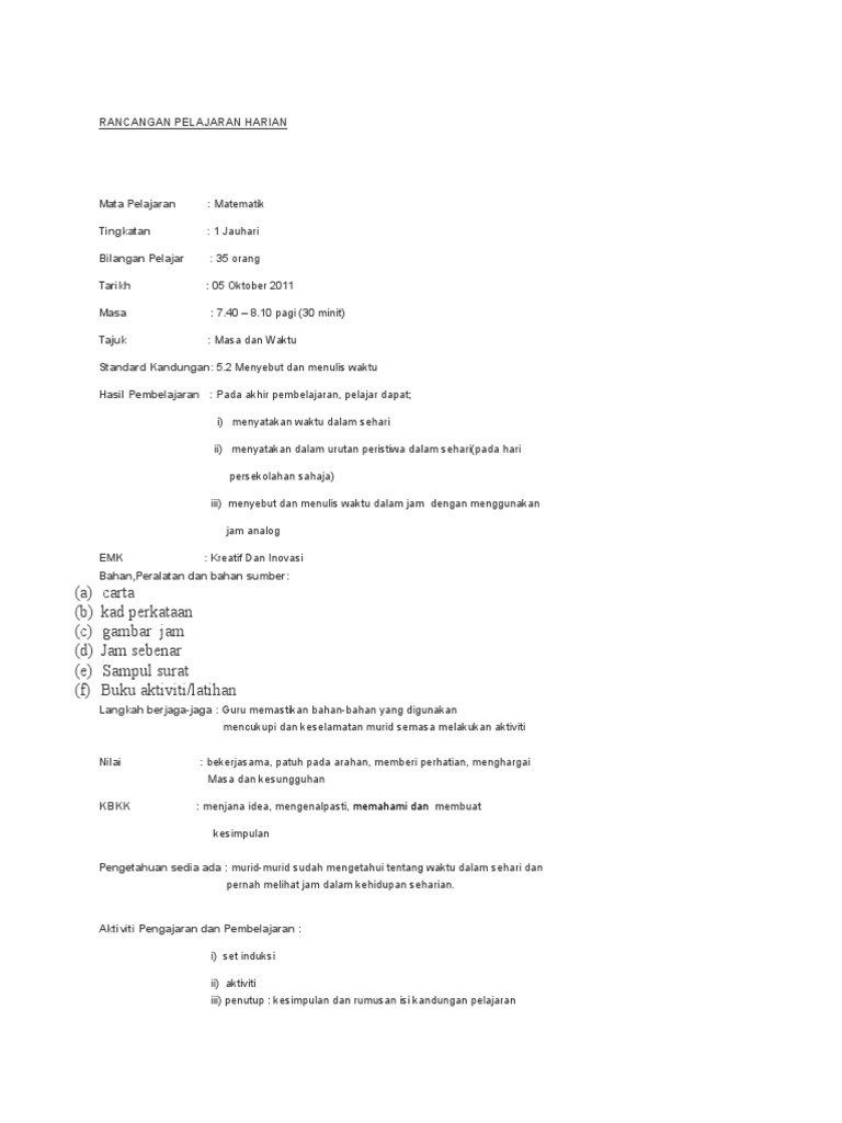 Ha, untuk tahu apa dan bila, jom semak gambar di bawah. Videos you watch may be added to the tv's 10000 keputusan untuk 'masa dan waktu matematik tahun 1'. Dicatat oleh unknown di 9:16 ptg. Masa dan waktu aras sukar konstruk 1 the total time needed to fill 9 similar containers is 144 minutes. Hasil pembelajaran diterbitkan olehyuliani budiono telah diubah 2 tahun yang lalu.